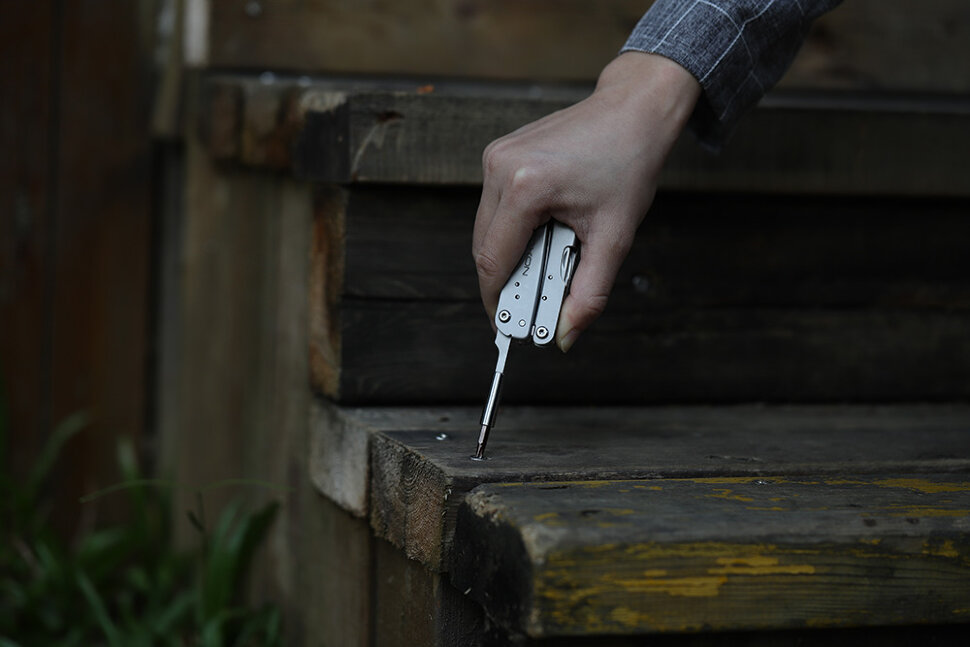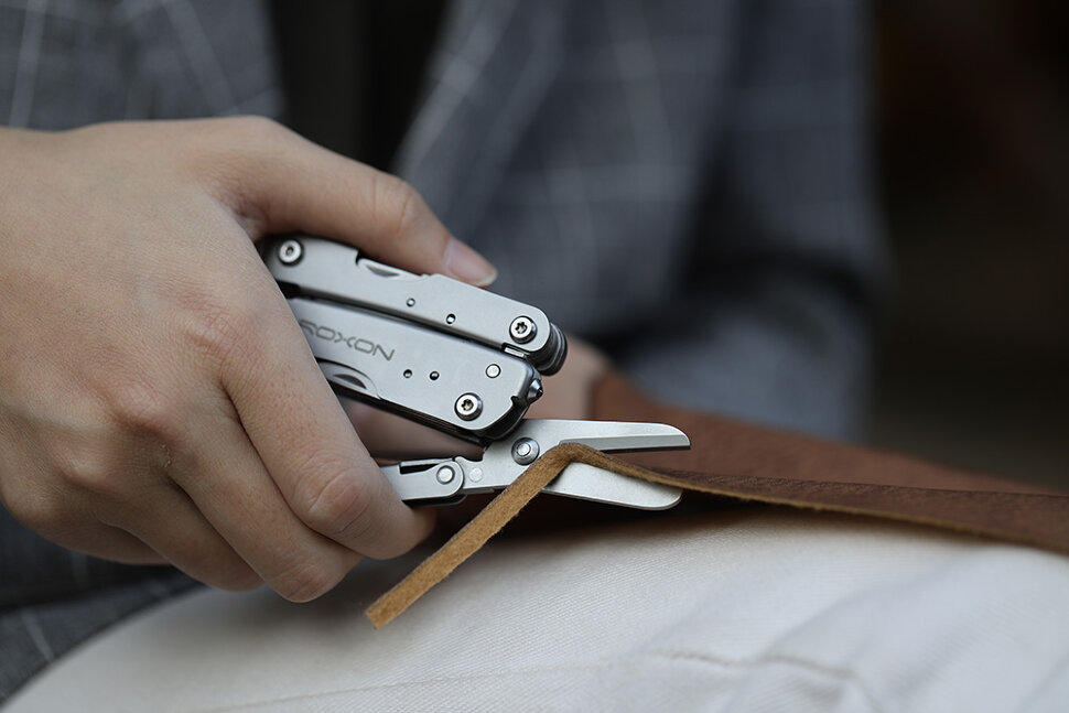 В этом мультиинструменте объединены 14 разных функций. В том числе: пилка для ногтей, отвёртка, плоскогубцы, нож, открывалка для коробок, консервный нож, ножницы, приспособление для разбивания стекла и другие приспособления. С помощью таких удобных орудий вы сможете выполнить множество стандартных операций, с которыми человек чаще всего имеет дело.